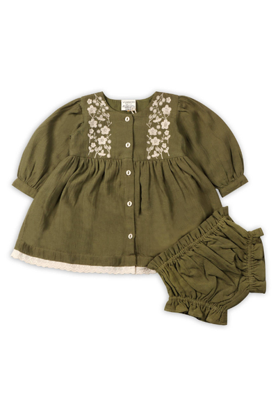Hazel Embroidered Baby Dress & Bloomer Set