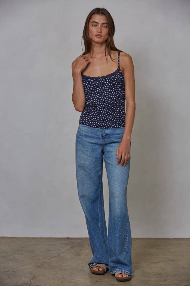 Floral Print Waffle Cami Top